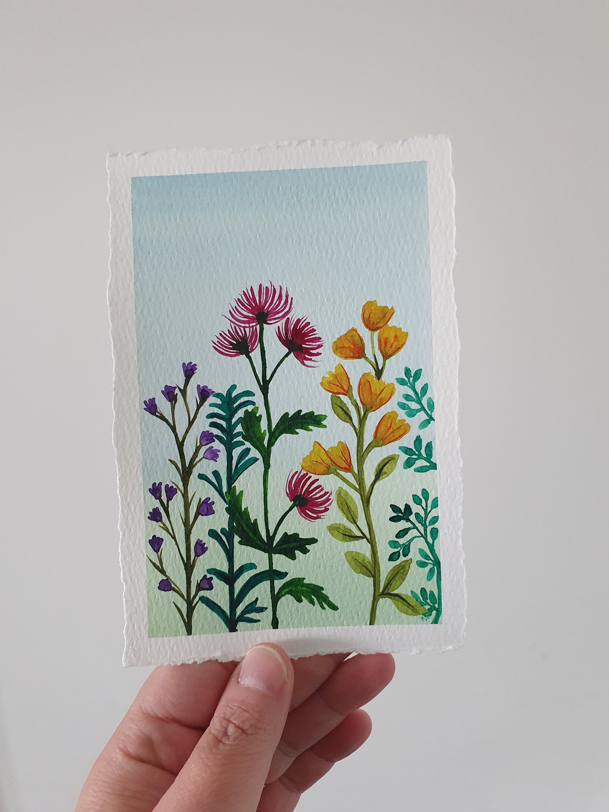 Origineel aquarel schilderij getiteld 'Fall Flowers in Bloom'